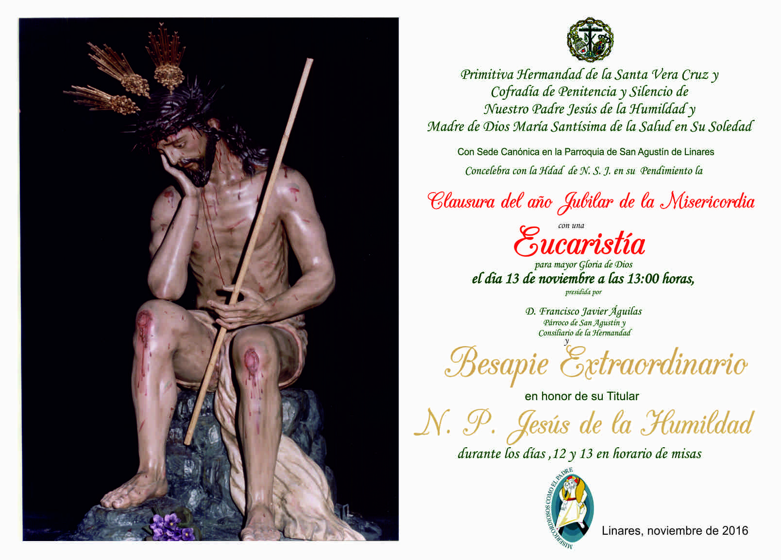 La Hermandad de la Vera+Cruz va a exponer a Jesús de la Humidad en devoto Besapié Extraordinario durante los días 12 y 13 de noviembre en horario de la parroquia, como clausura al Año de la Misericordía decretado por el Santo Padre.