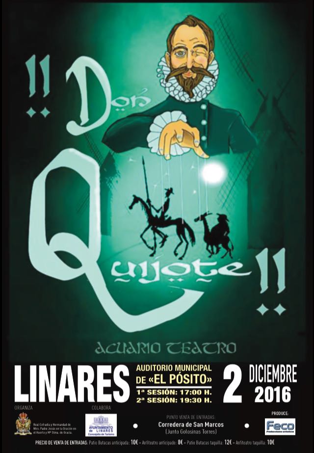 La Obra Teatral "Don Quijote" se representará en el Audiorio Municipal del Pósito por "Acuario Teatro" , el próximo 2 de diciembre en dos pases 17.00 horas y 19.30 horas.