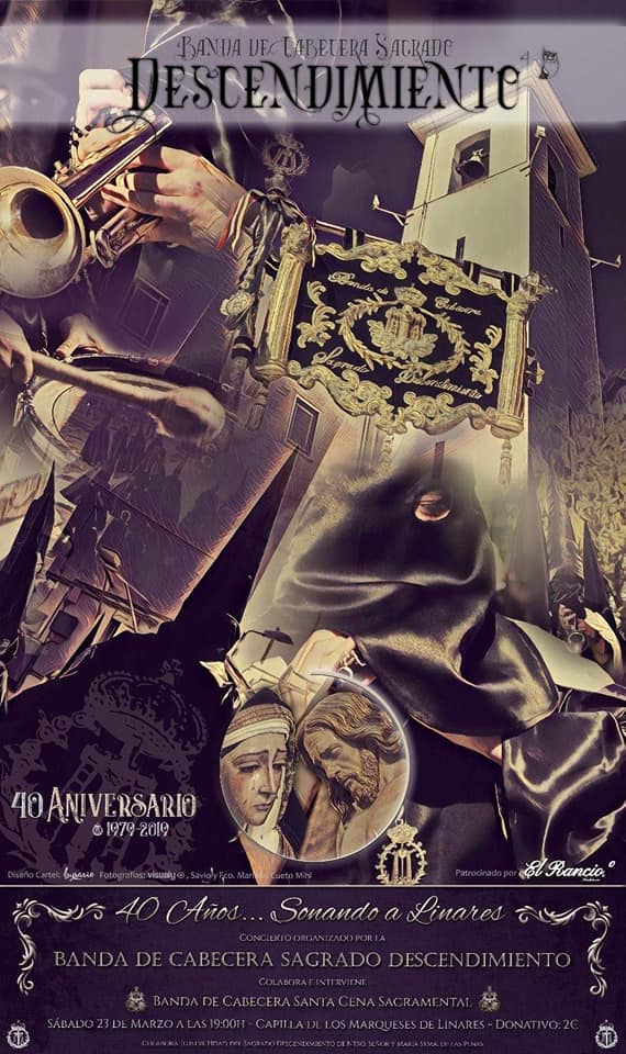 Mañana, sábado, a las 19:00 horas, se celebrará en la Capilla del Hospital de los Marqueses el concierto conmemorativo por los 40 años de la Banda de Cabecera de la Hermandad del Descendimiento. En el mismo intervenderá la Banda de Cabecera de la Santa Cena Sacramental.