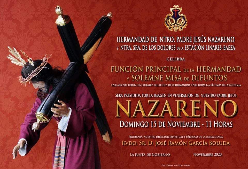 Mañana, domingo 15, a partir de las 11:00 horas, tendrá lugar la Función Principal de la Hermandad del Nazareno de la Estación Linares-Baeza, así como la Misa de Difuntos por todos los cofrades fallecidos y víctimas de la pandemia. Todo ello se llevará a cabo siguiendo las recomendaciones sanitarias de nuestra comunidad autónoma, con motivo de la Covid-19. Rvdo. Sr. D. José Ramón García Boluda oficiará la Eucaristía en la Parroquia de la Inmaculada Concepción.