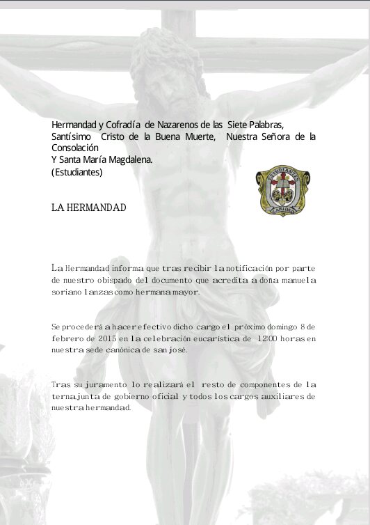 Doña Manuela Soriano Lanzas jurará como Hermana Mayor de los Estudiantes este domingo próximo