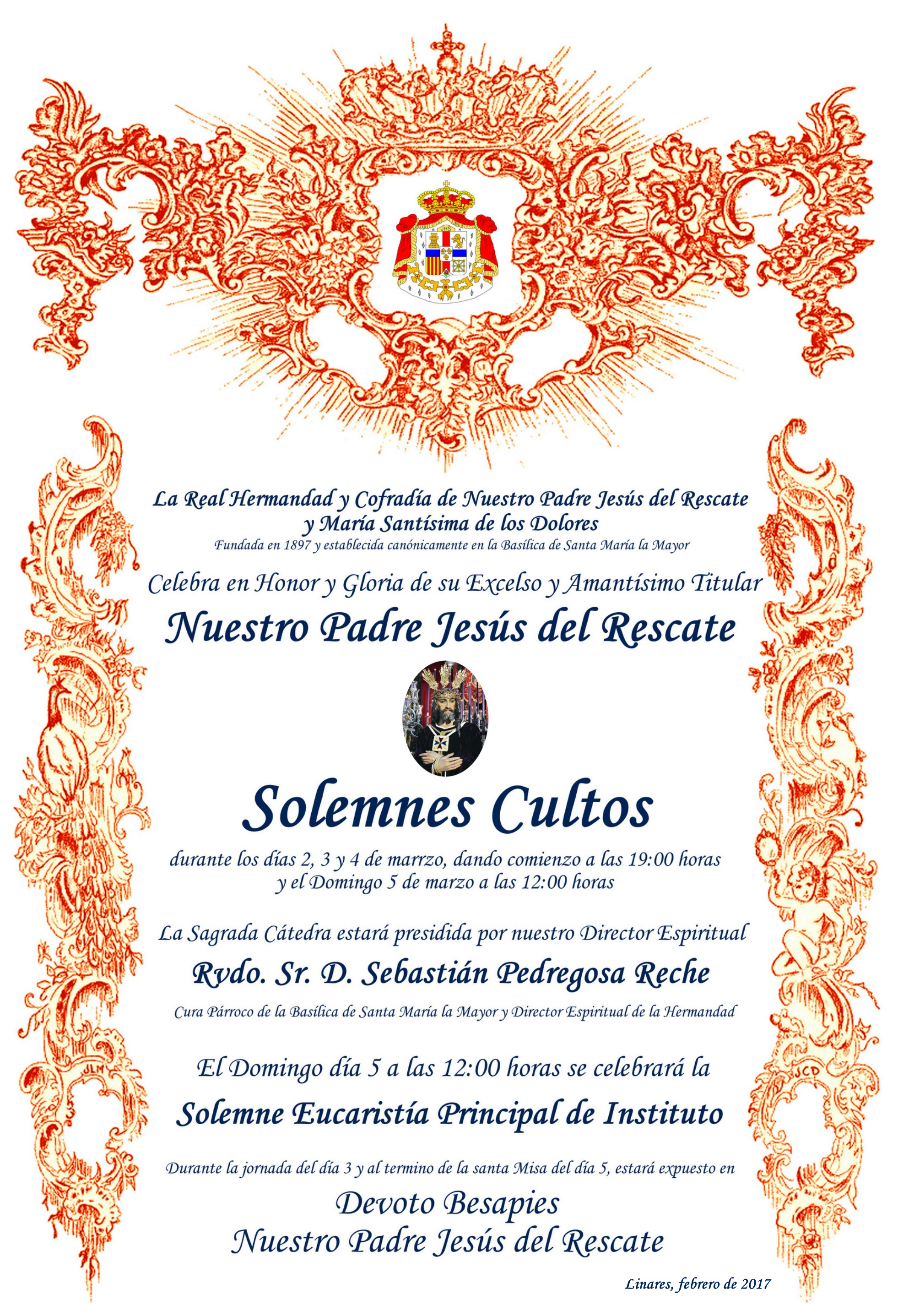 Ls Hermandad del Rescate celebrará triduo, Función Principal y Besapiés en la Basílica de Santa María como dictan sus reglas.