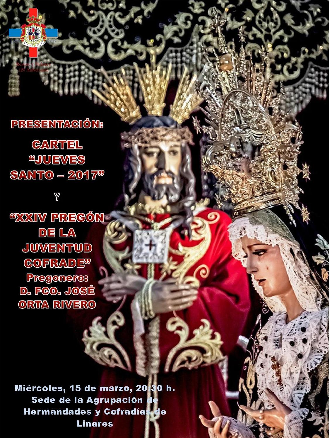 La presentación del Cartel de Jueves Santo 2017 de la Hermandad del Rescate y del Pregonero de Juventud don Fco. José Orta Rivero tendrá lugar en la Agrupación de Cofradías el 15 de marzo a las 20.30 horas.