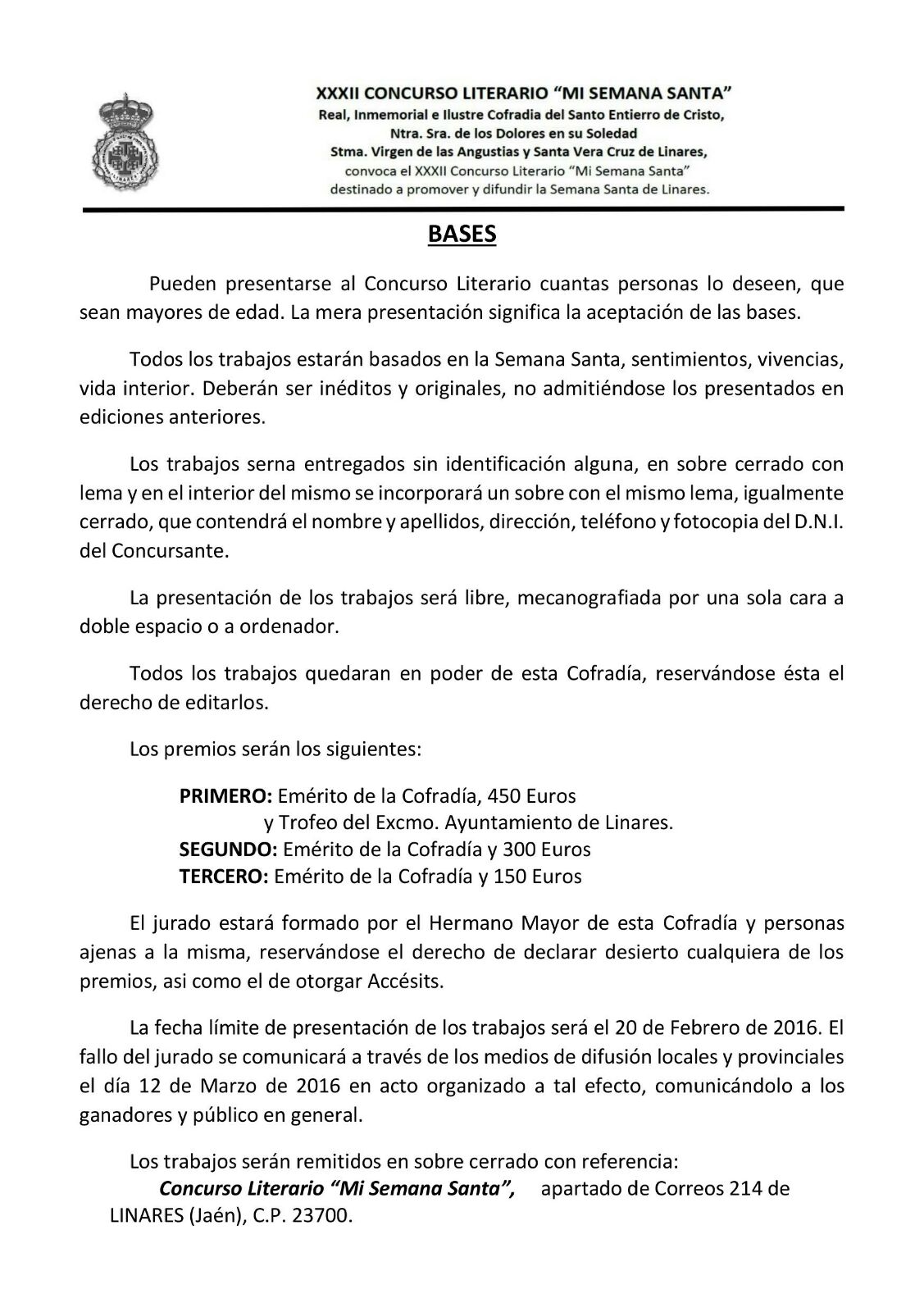El Santo Entierro convoca su XXXIII Concurso Literario