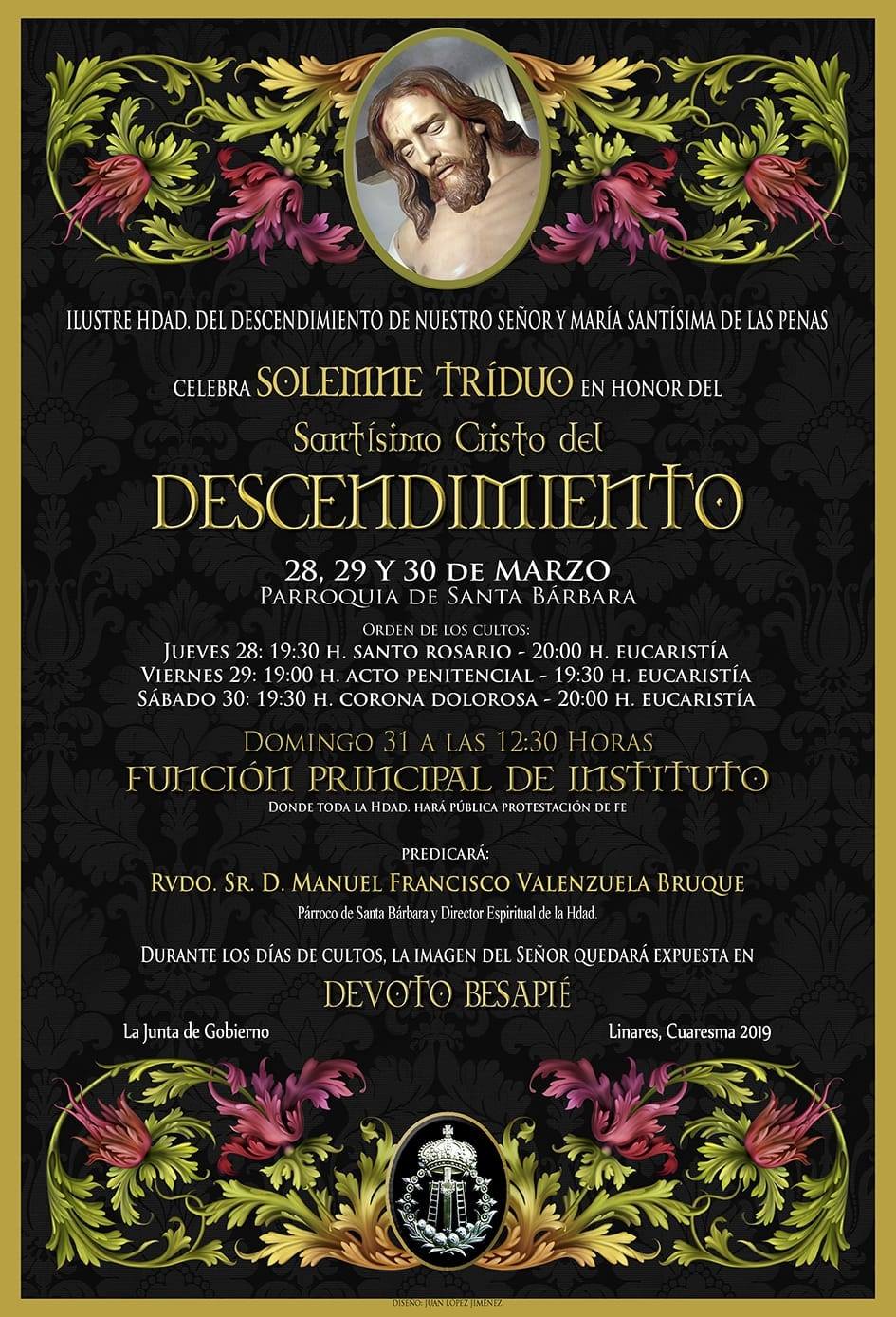 La Hermandad del Descendimiento se encuentra inmersa en la celebración de los cultos cuaresmales en honor de su Titular. Este domingo, a las 12:30 horas, tendrá lugar la Función Principal en la Parroquia de Santa Bárbara.