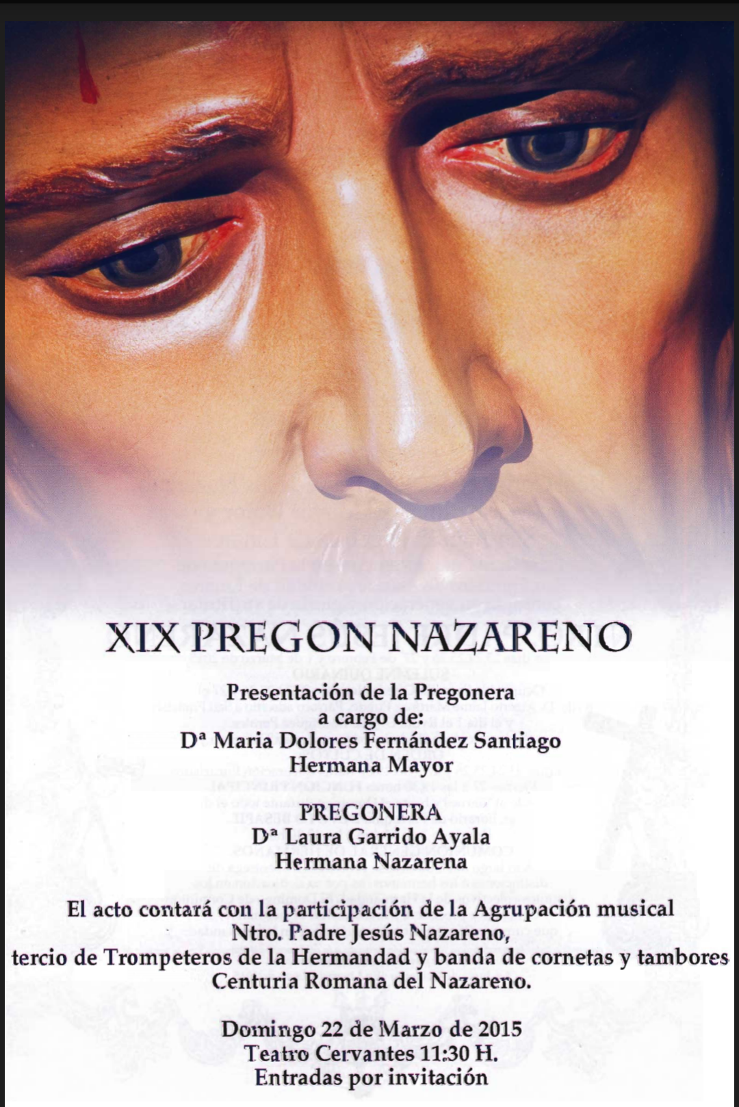 Este próximo domingo XIX Pregón Nazareno en el Cervantes