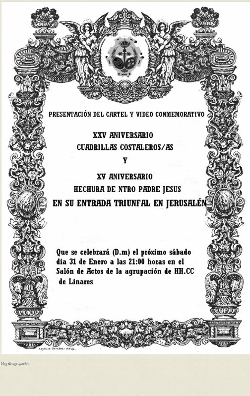 Hoy Presentación en la Agrupación de Cartel y Vídeo Conmemorativo de los Aniversarios de la Hermandad de la Entrada en Jerusalén