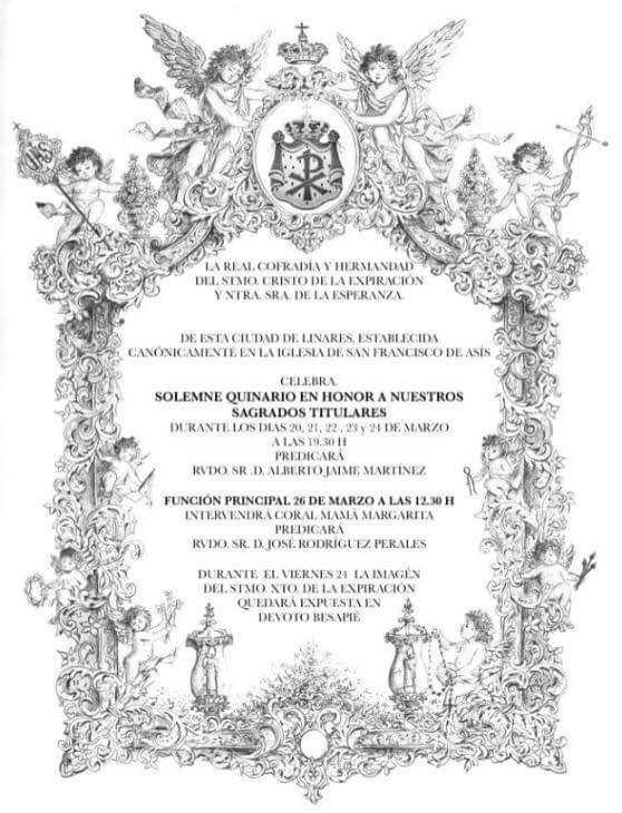 Durante los días 20,21,22,23 y 24 se celebrará el quinario y el día 26 la función principal en honor al Stmo. Cristo de la Expiración.