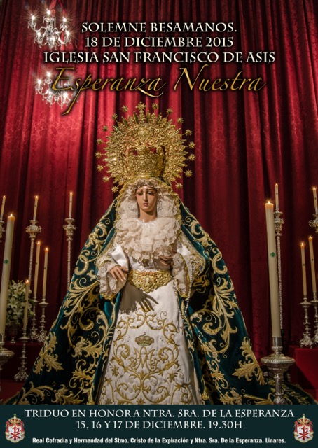 Durante los días 15, 15 y 17 la Hermandad de la Expiración celebrará Triduo que antecederá a la celebración de la Festividad de la Esperanza,día 18, en la cual la bendita imagen estará expuesta en Besamanos.