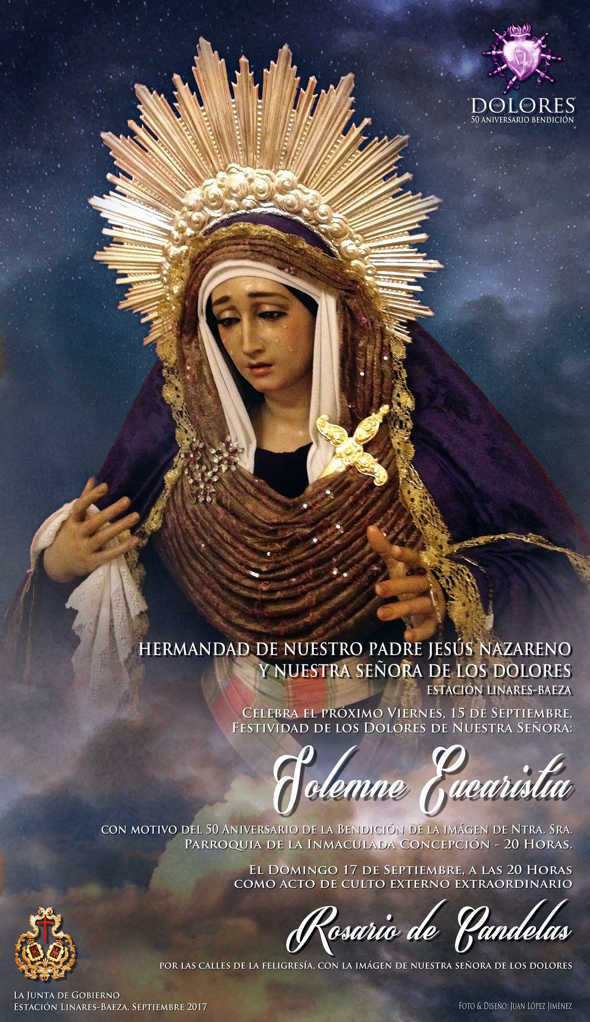 El próximo día 15 celebrará Eucarustía en honor a la Virgen de los Dolores en el 50 aniversario de su bendición. El domingo 17 saldrá de manera extraordinaria en Rosario de Candelas.