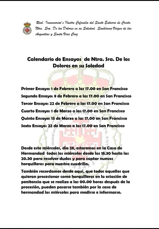 Del mismo modo todas las personas que quieran portar a la imagen de la Soledad en su salida de las 00.00 horas también pueden ir a tallarse a la Casa de Hermandad.