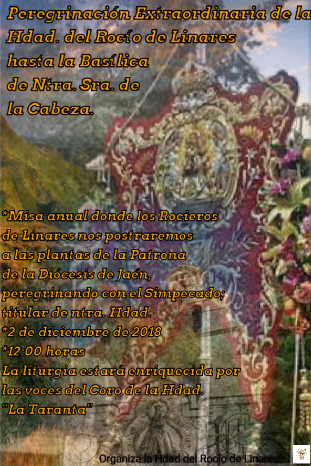 La Hermandad de Gloria de Ntra. Sra. del Rocío se desplazará con su Simpecado titular hasta las plantas de la Virgen de la Cabeza, el próximo domingo 2 de diciembre, para participar en la celebración de la Eucaristía, a las 12:00 del mediodía, en el Santuario de La Morenita.